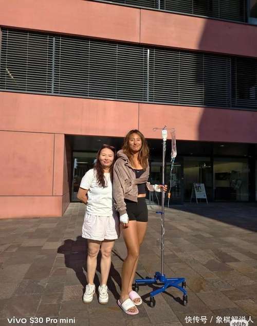 不得不说,郑钦文这人命力是真决然。小麦色的肌肤,健康又充满力量。就算挂着吊瓶,那双大长腿也自带超模气场。更绝的是,她还俏皮地把外衣左袖塞进右口袋,不测穿出了随心的前锋感。这大致即是传奇中的“前锋的完成度,在于脸”吧。